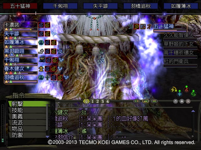 (1)共有左右兩隻小怪(隔一段時間會重生),兩隊必須蒐集封樹的告誡才可以挑戰五十猛神。