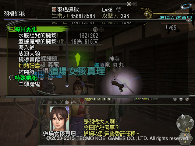 這邊大概跑一下武士道場的任務看看,接的是盤據魔都的魔物。